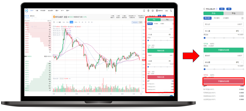 步驟 5 :完成開通合約交易後,劃轉資金進行合約交易。