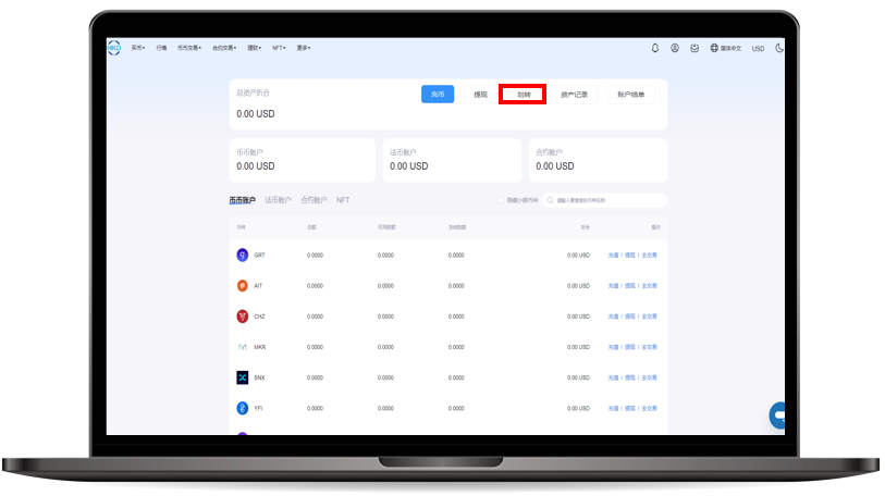 ① 從【 現貨帳戶】劃轉 USDT 至【 逐倉合約帳戶 】帳戶中,您可以選擇想交易的合約幣種。